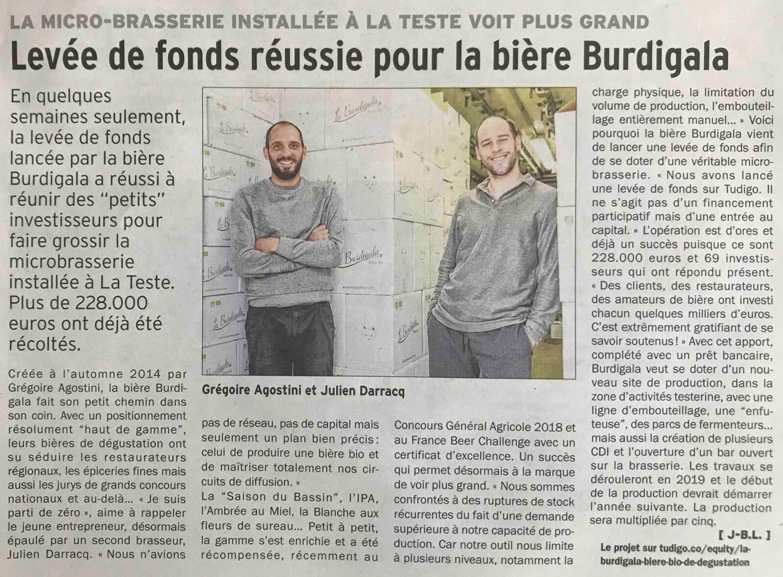 En quelques semaines seulement, la levée de fonds lancée par la bière Burdigala à réussit à réunir des “petits” investisseurs pour faire grossir la micro brasserie installée à La Teste de Buch. Plus de 230 000€ ont déjà été récoltés.